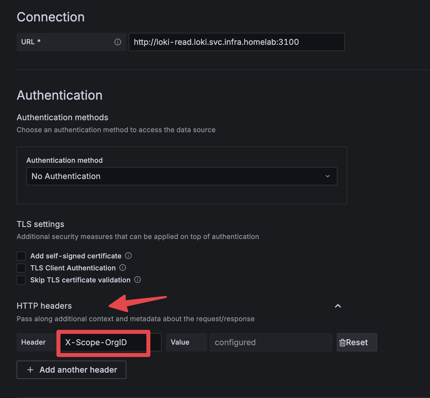 在grafana上添加loki的时候发现还要有个特殊的头: